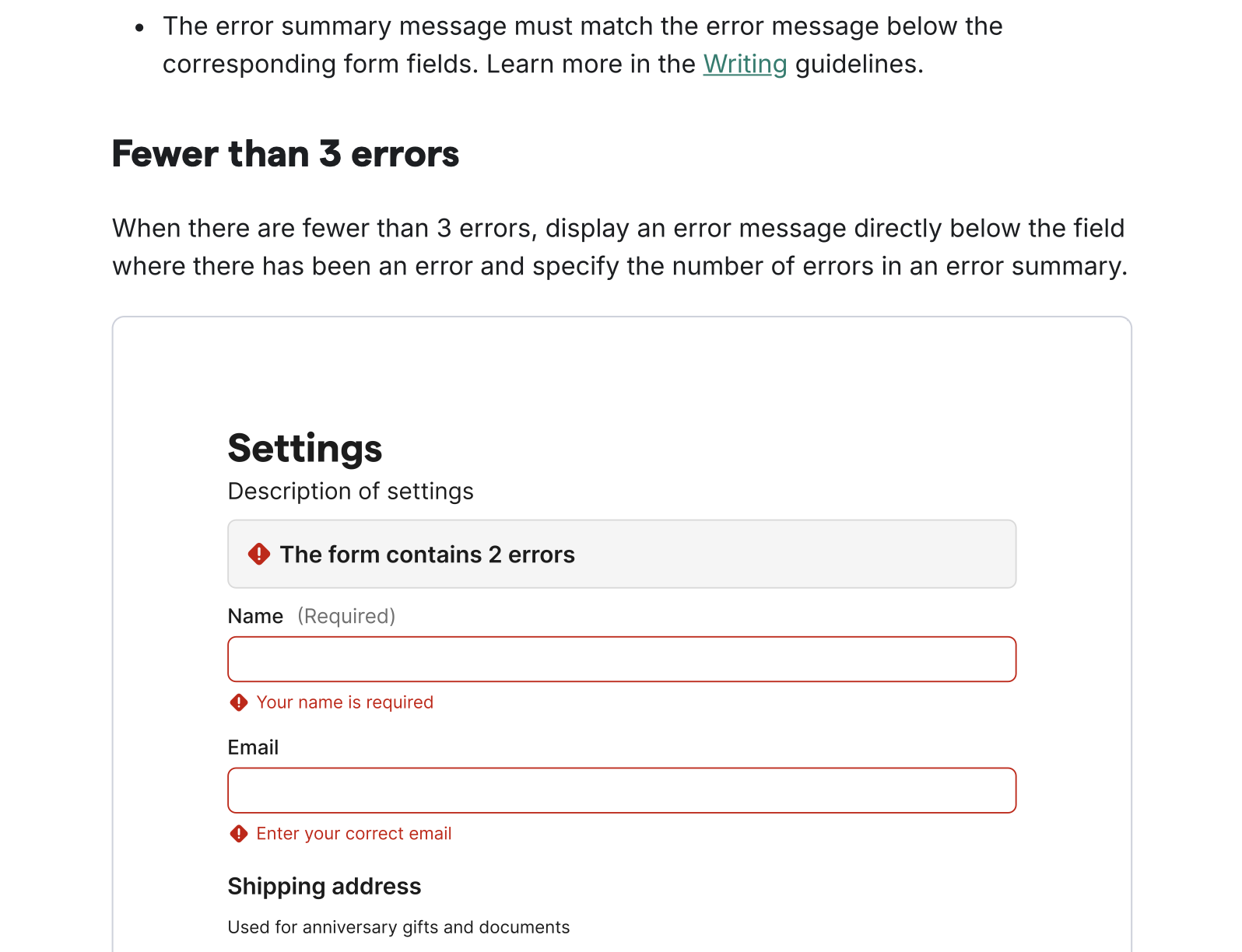 Documentation for the feedback survey component and error message patterns were net-new articles. Additionally, I utilized the design system itself to build the example imagery for these articles.