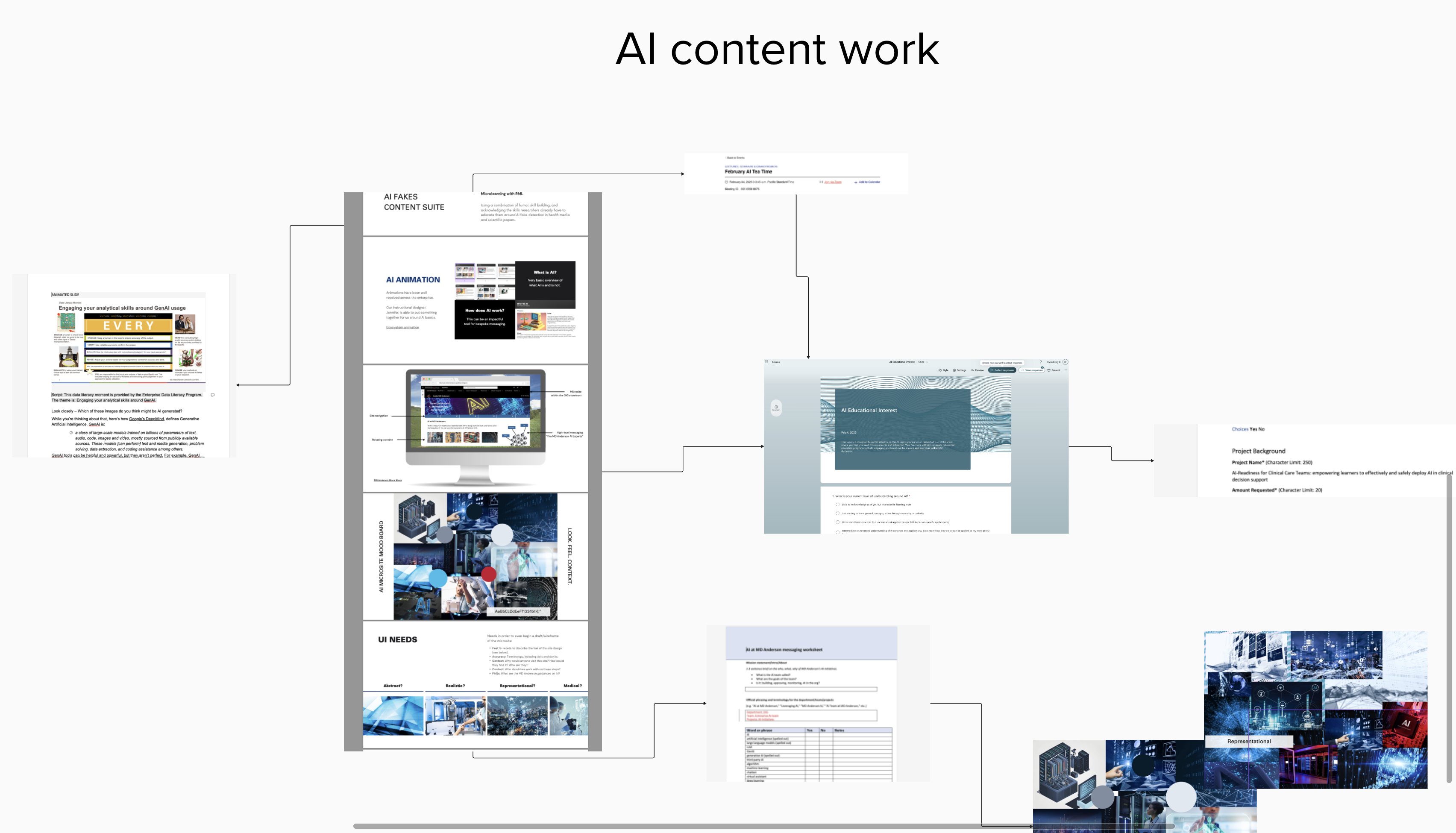 A huge part of my position was centered on content architecture work in an effort to build everything as organized and scalable. I developed templates for module creation and established our Manual of Style, ensuring consistency across the dozens of courses concurrently in-flight at any given time. It was quite a challenge managing this within a team of 4 with only one writer and one instructional designer. Add to that the constant stream of grant writing, project management tasks, state and institutional level compliance work, and equal time on the AI taskforce building content around misinformation and AI in healthcare ethics – I was busy!